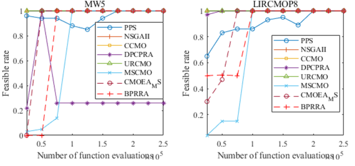 约束多目标优化问题(Constrained Multiobjective Optimization Problem, CMOP)中往往会出现一些可能具有欺骗性的局部最优区域。目前的约束多目标算法(Constrained Multiobjective Evolutionary Algorithms, CMOEAs)往往由于同一时间-空间节点下群体功能单一,无法持续探索多样性,也无法平衡探索重点,种群难以维持多样性和逃离局部最优区域。为此,本文提出了一种名为BPRRA的双阶段双种群算法,该算法利用新技术探索有希望区域边界并实现计算资源的合理分配。在第一阶段,双种群分别在忽略约束条件和考虑约束条件的情况下探索有希望区域的上下边界。在第二阶段,双种群通过多样性存档策略从不同的有希望区域边界来探索不同的解区域。此外,根据潜在后代的比例,设计了一种新的资源分配策略来动态分配有限的计算资源。为验证BPRRA的性能,本文将BPRRA用于求解五个基准CMOP测试集和九个实际问题,并与现有CMOEAs进行对比。实验结果表明BPRRA具有优越的性能,能够有效求解CMOPs。论文的主要贡献包括: